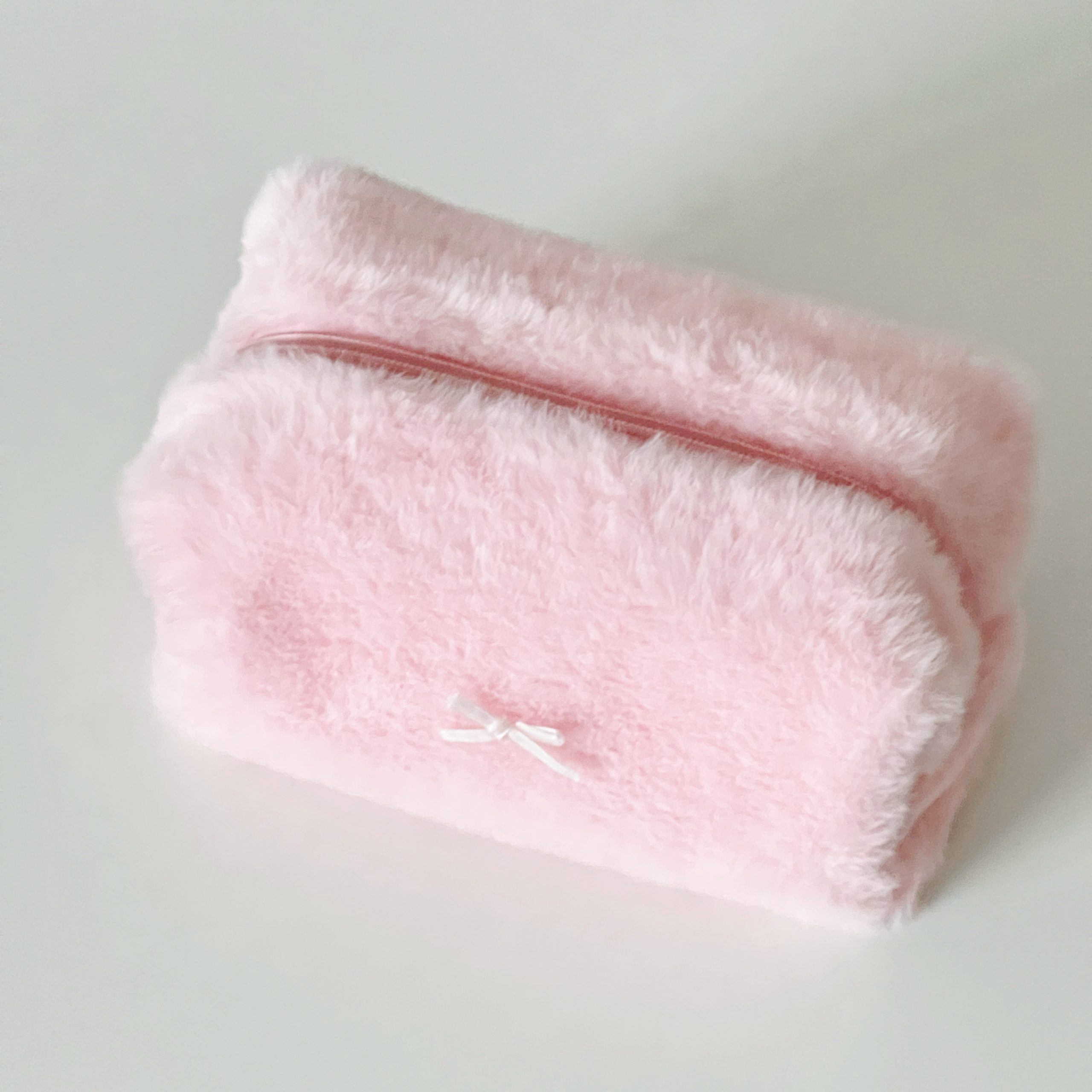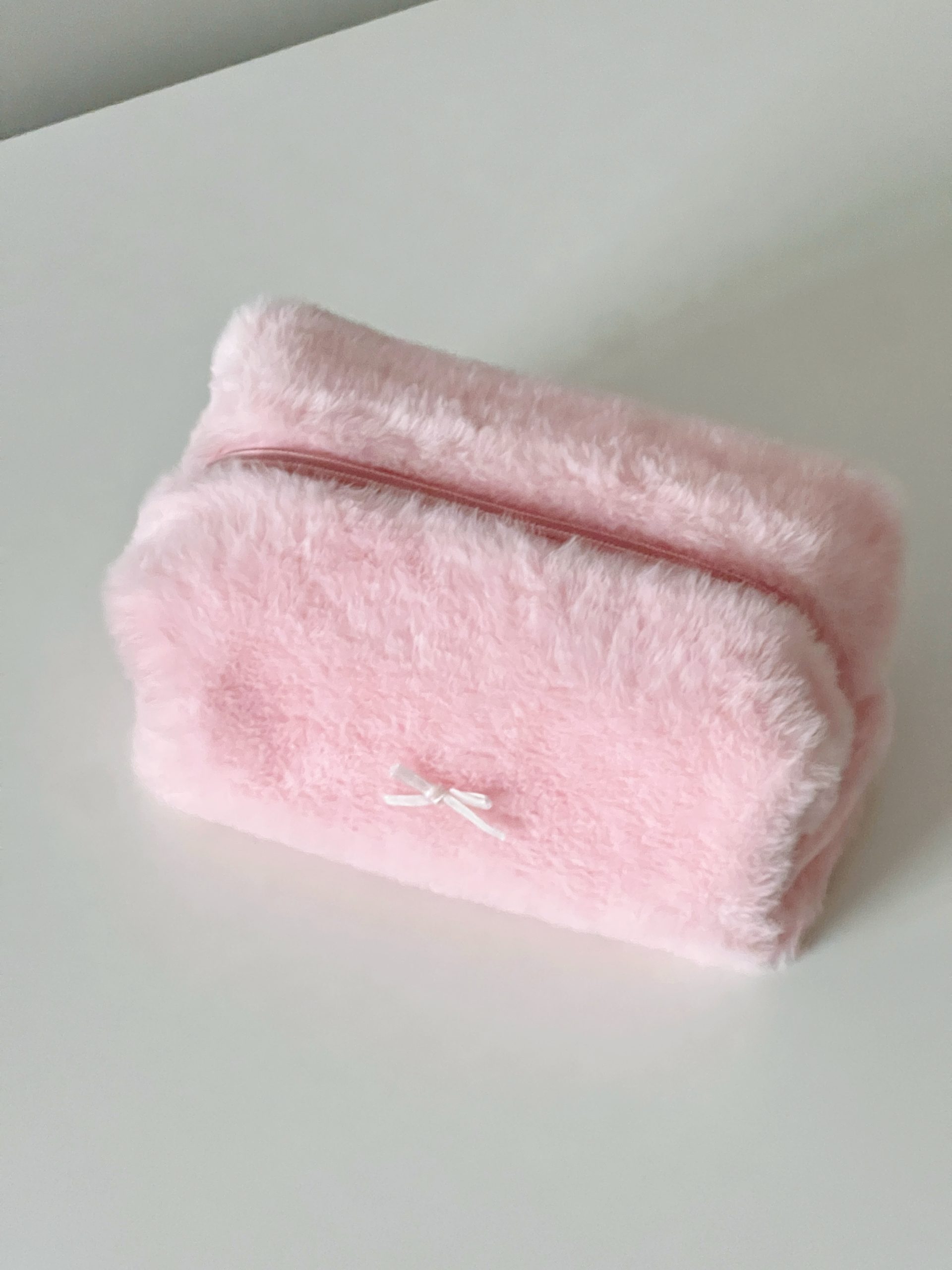 Fluffy bow makeup bag – Soft pink